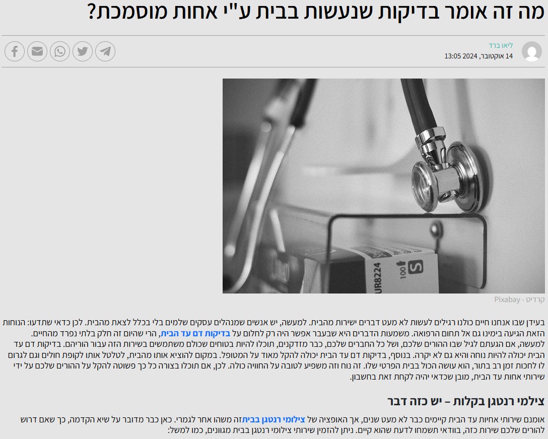 מה זה אומר בדיקות שנעשות בבית ע"י אחות מוסמכת?